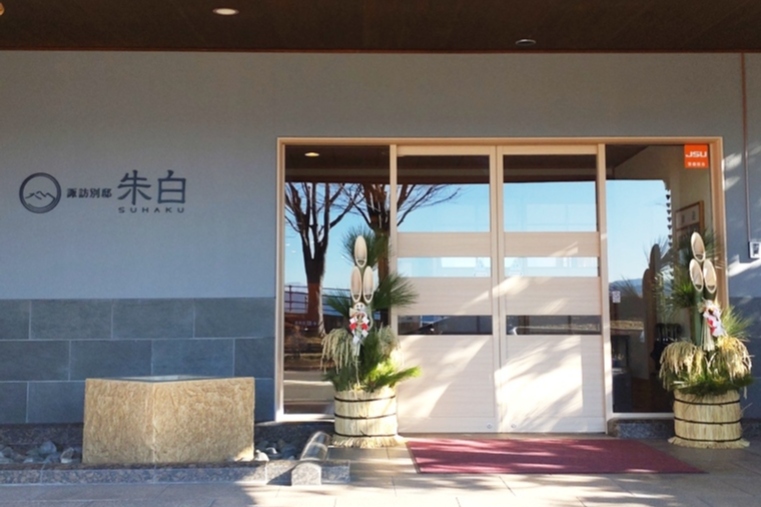 『信州上諏訪温泉 諏訪別邸 朱白』。